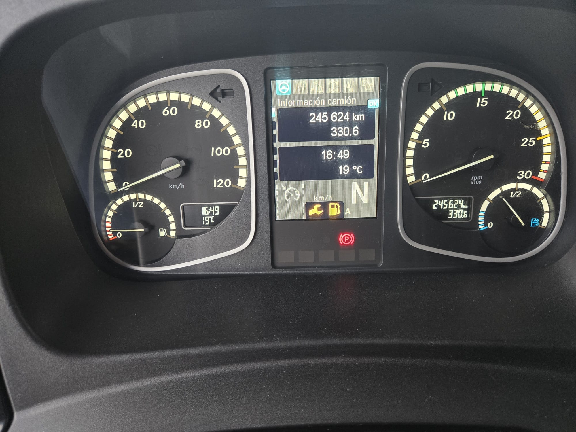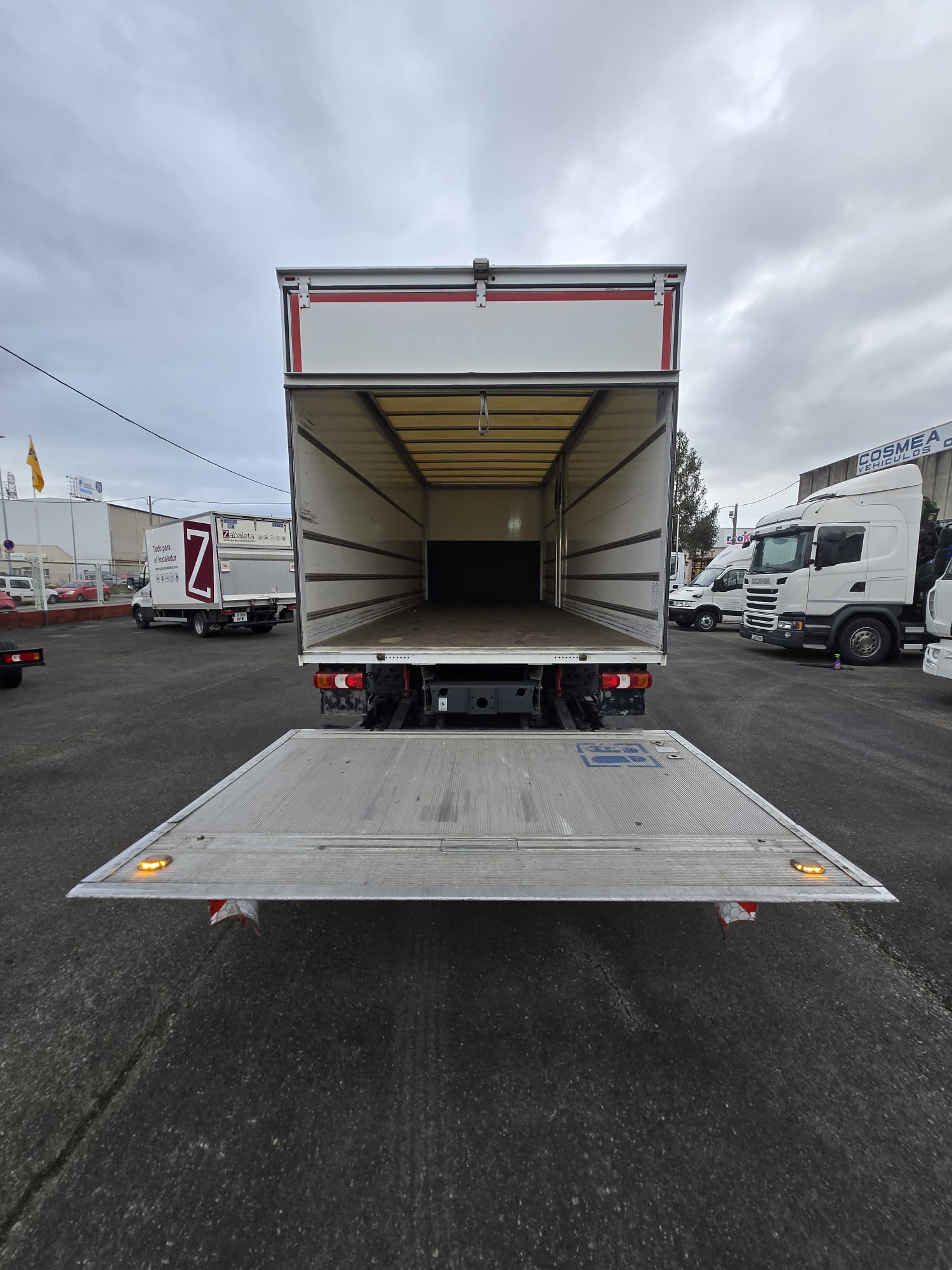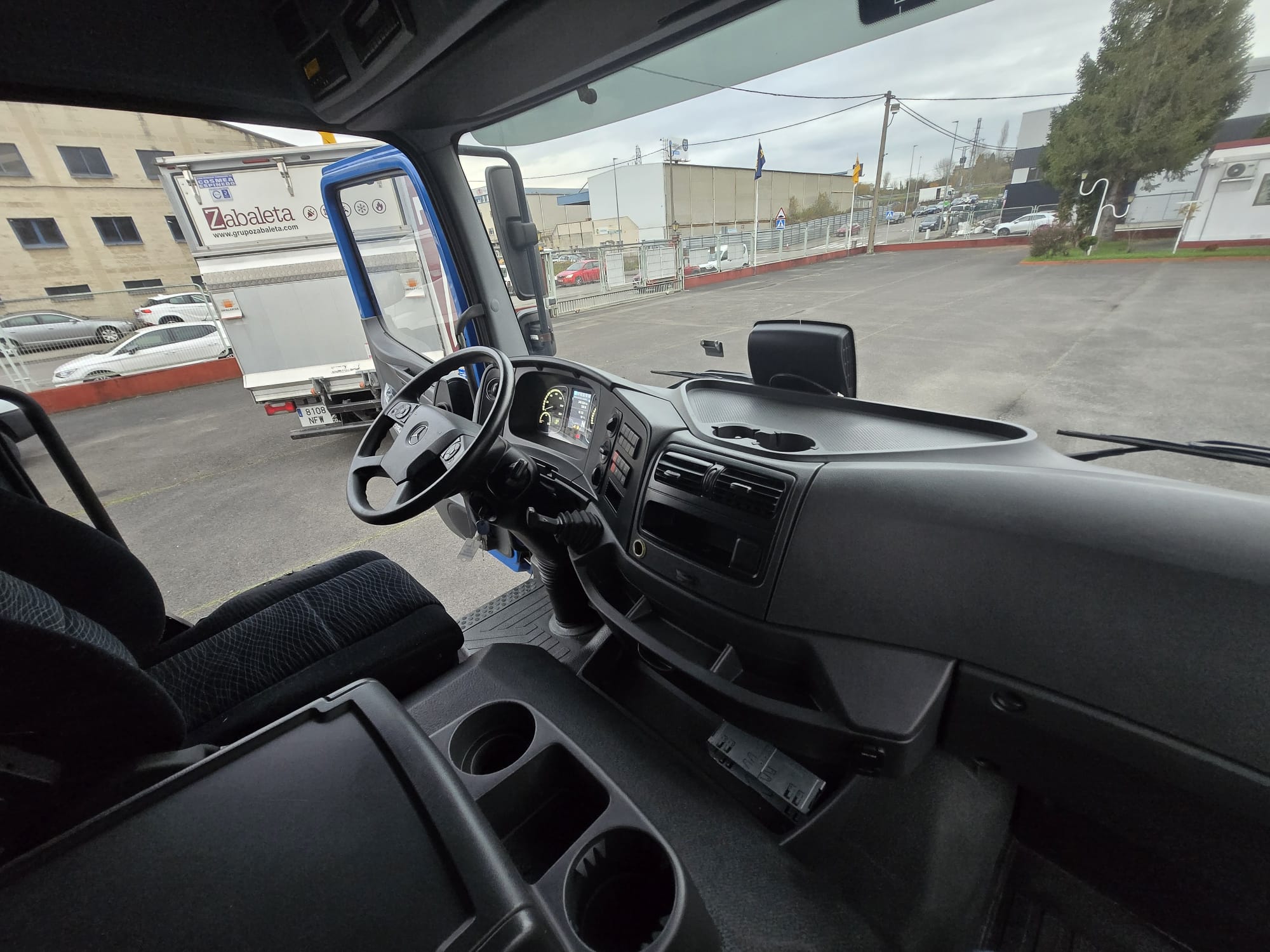 Motor Euro VI 240cv, 6 cilindros, cambio automático de 6v+R, freno motor de 2 posiciones, 2 plazas en cabina, techo practicable, volante multifunción, cámara de visión trasera, control de velocidad, asistente cambio involuntario de carril, radio CD con bluetooth, control de estabilidad, ayuda arranque en cuesta, elevalunas eléctricos, espejos eléctricos y antivaho, aire acondicionado, luces LED diurnas, asiento conductor neumático con regulación lumbar por aire, frenos de disco, alerón sobre cabina, visera, suspensión neumática trasera.