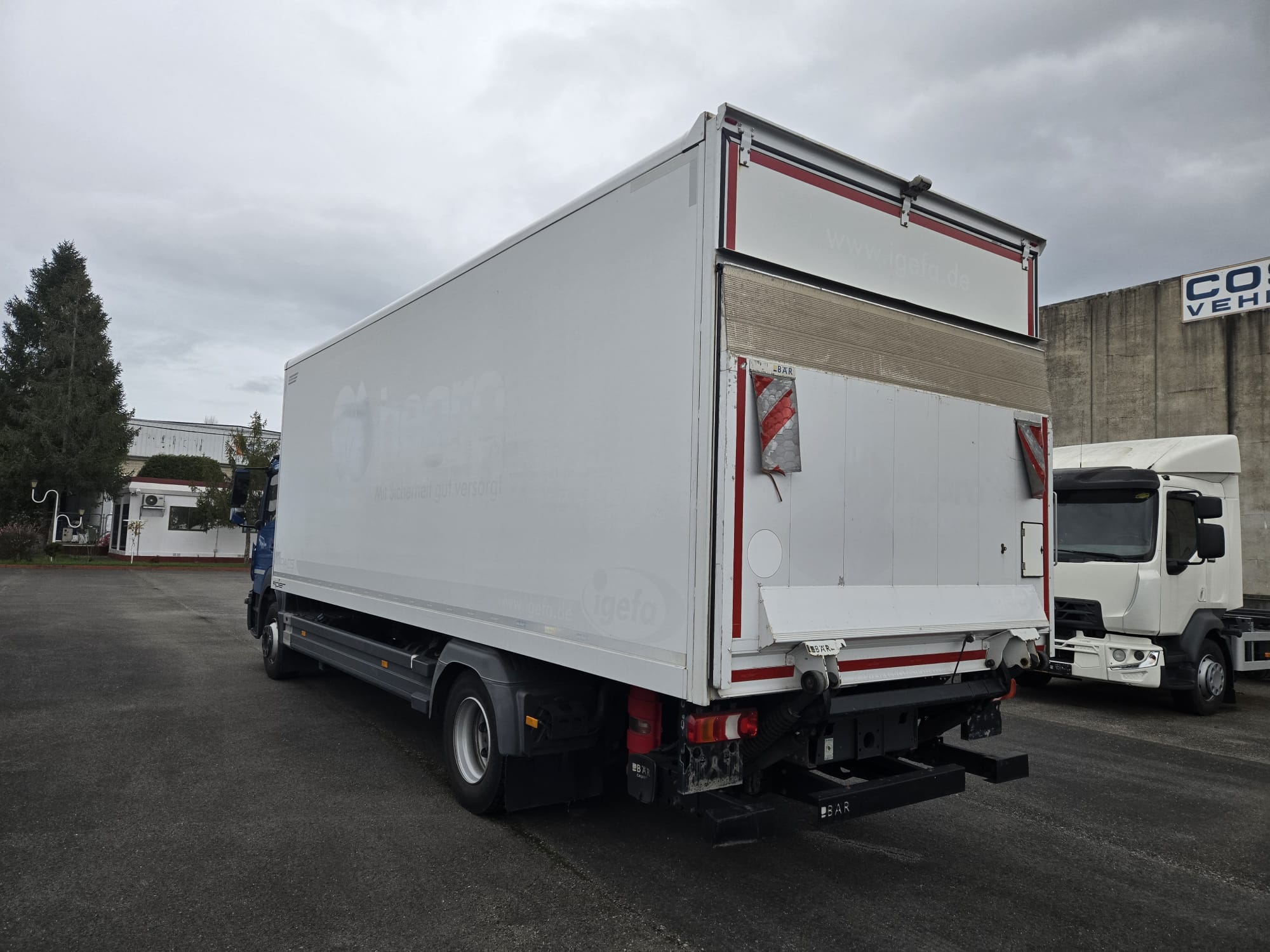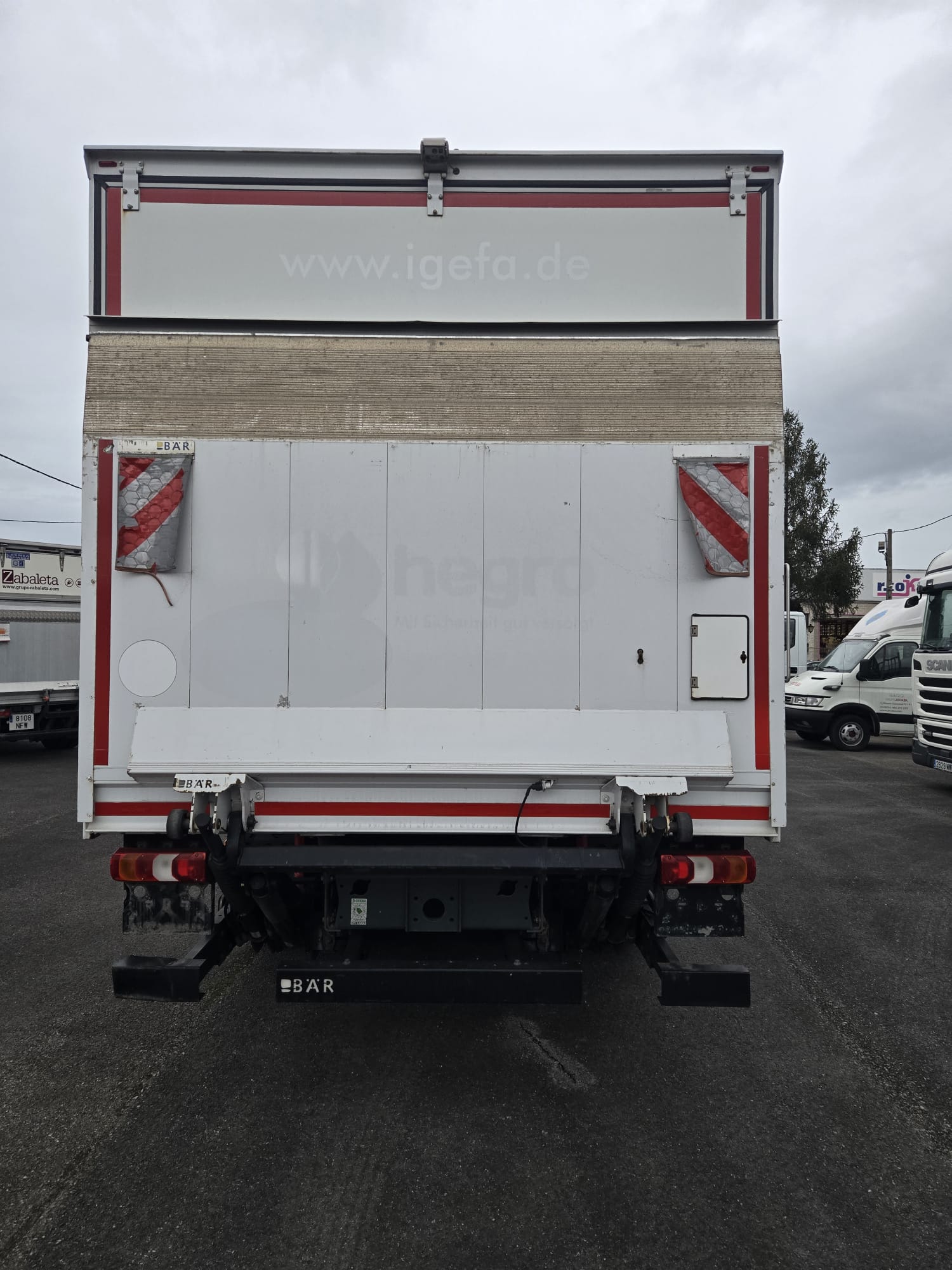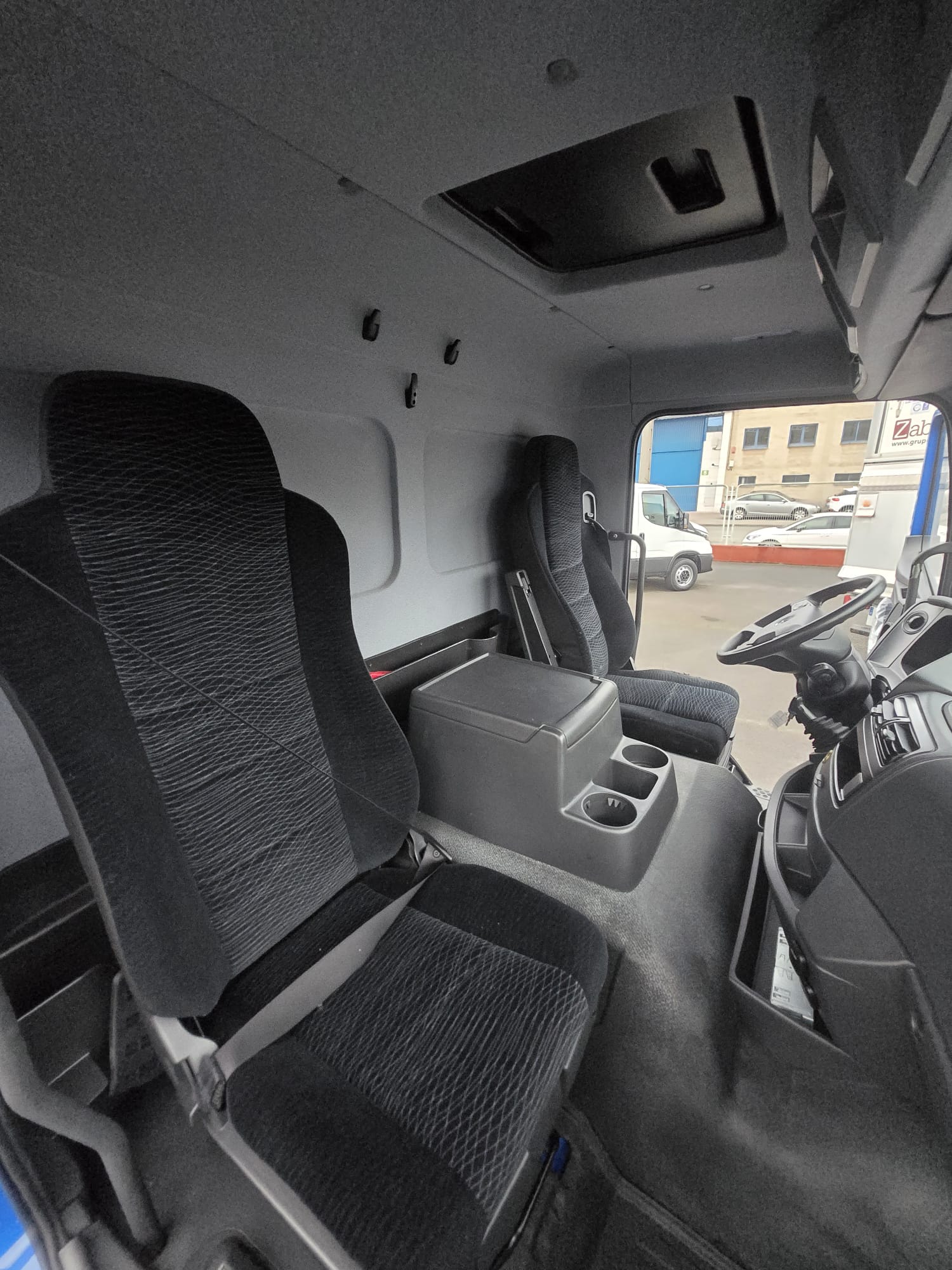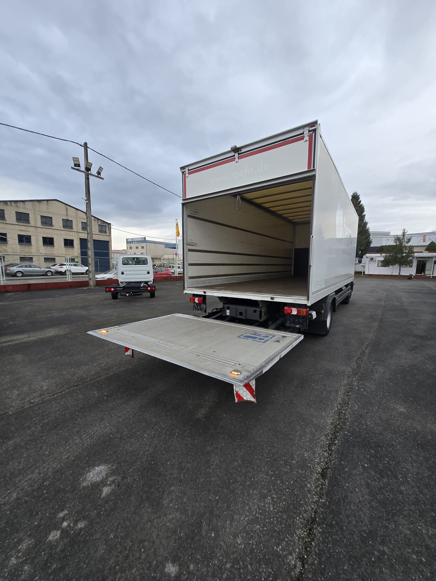 Motor Euro VI 240cv, 6 cilindros, cambio automático de 6v+R, freno motor de 2 posiciones, 2 plazas en cabina, techo practicable, volante multifunción, cámara de visión trasera, control de velocidad, asistente cambio involuntario de carril, radio CD con bluetooth, control de estabilidad, ayuda arranque en cuesta, elevalunas eléctricos, espejos eléctricos y antivaho, aire acondicionado, luces LED diurnas, asiento conductor neumático con regulación lumbar por aire, frenos de disco, alerón sobre cabina, visera, suspensión neumática trasera.